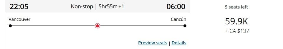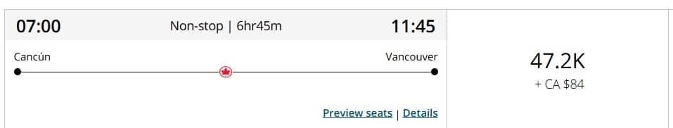 Kids’ schedules are often pretty regimented. So we’ll look at a time when everyone is likely to travel: March break. What’s it cost to go from Vancouver to Cancun on cash on Air Canada? Remember: this may be the only window you can realistically get somewhere nice like the Westin Cancun with the family.