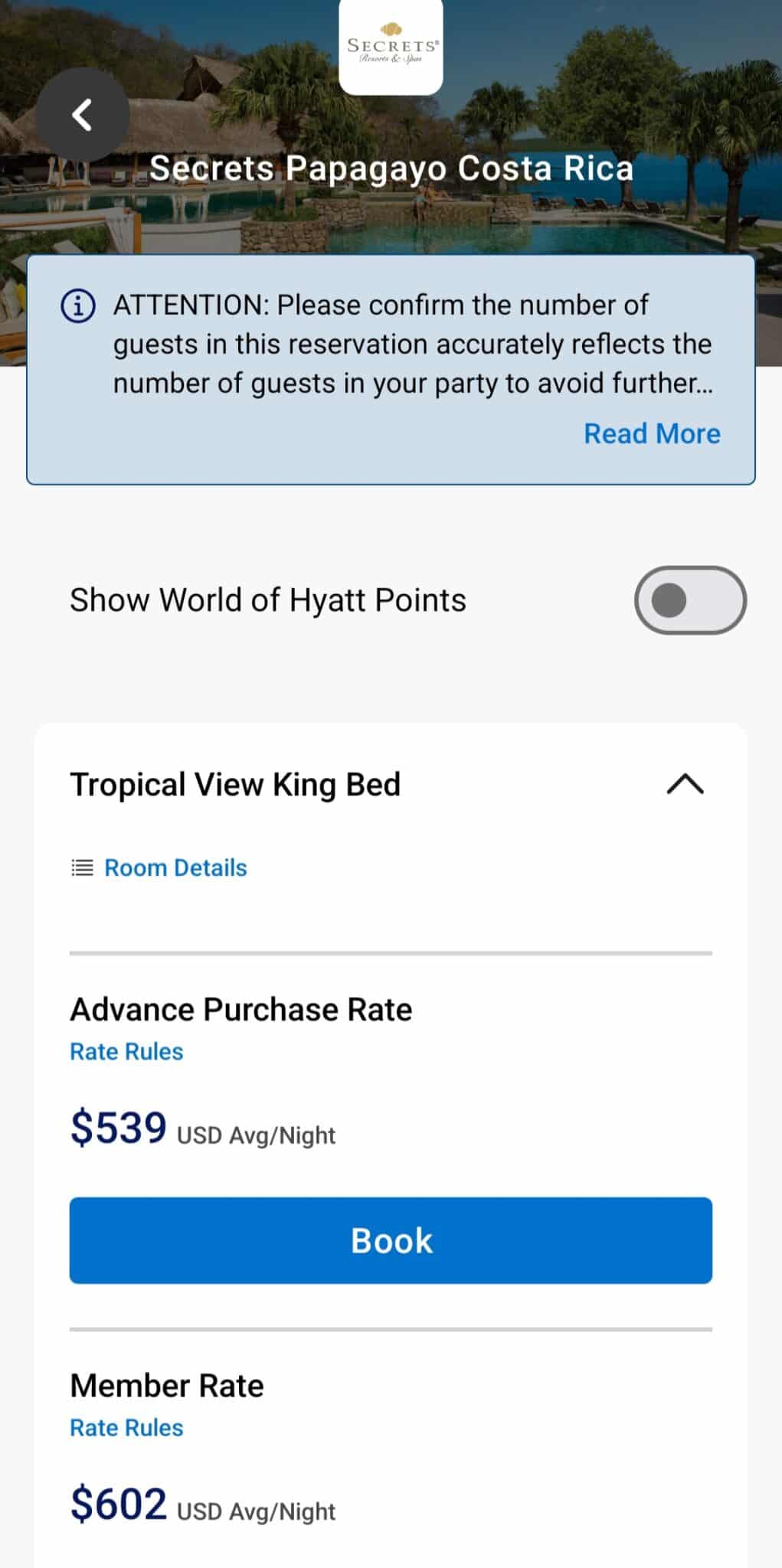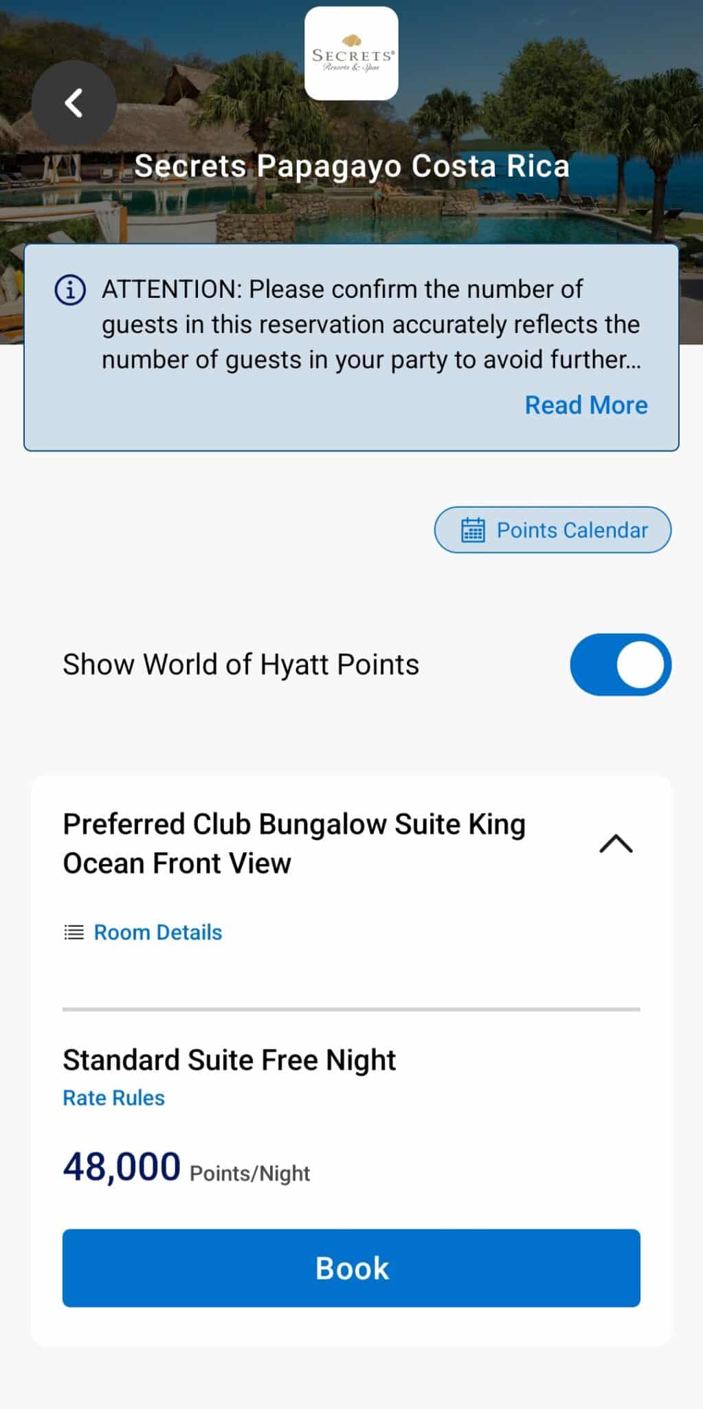 Suite availability can be tricky to interpret. While MaxMyPoint shows different room categories in different colors on the calendar, it doesn’t always clearly distinguish which color represents which room type. When suite availability is important to you, always cross-reference with the hotel’s official website to confirm exactly which room types are bookable with points.