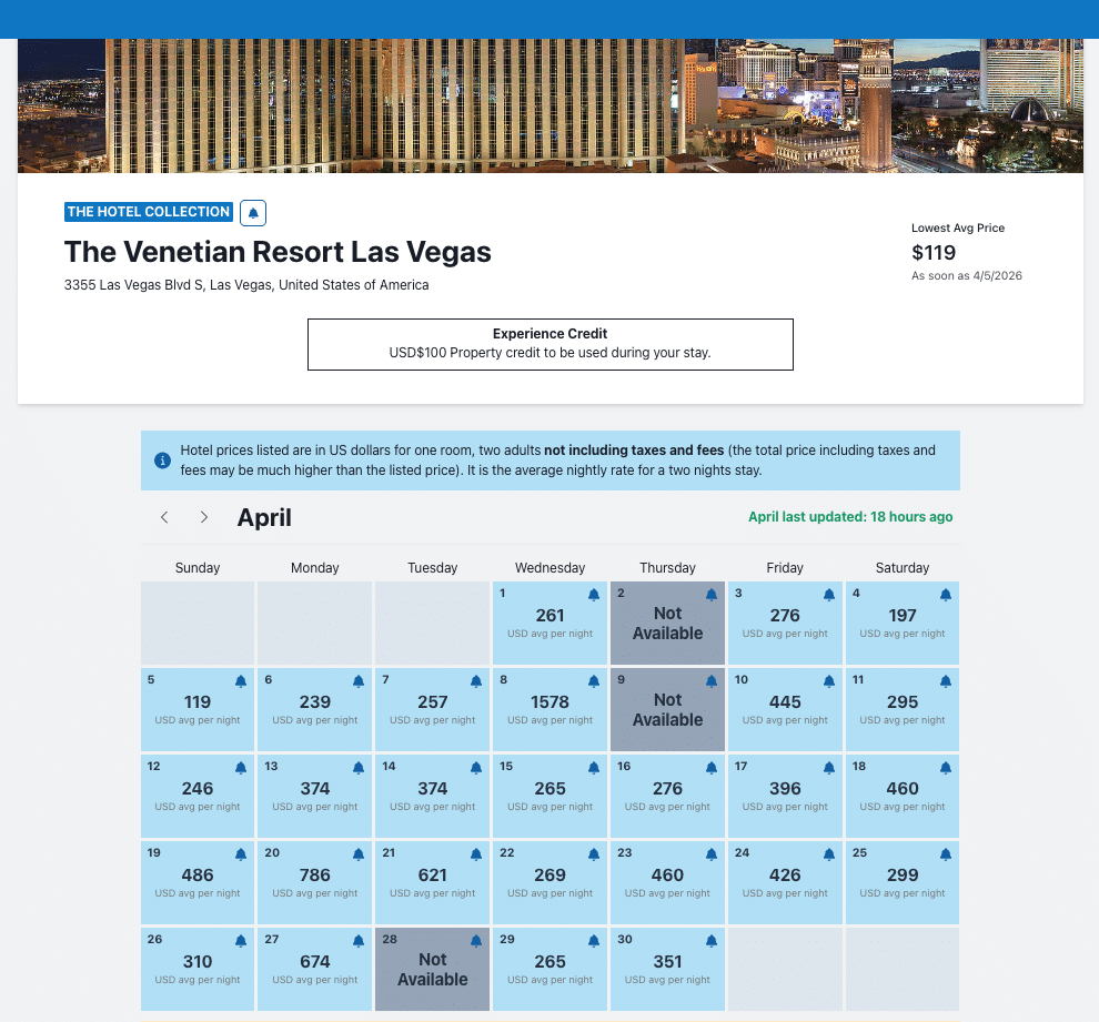 Pay attention to the “Updated” timestamp at the top right of the calendar. Popular properties refresh daily, but less frequently searched hotels might show data that’s a few days or weeks old. If the data isn’t current and you’re making a time-sensitive decision, setting an alert ensures you get real-time updates.