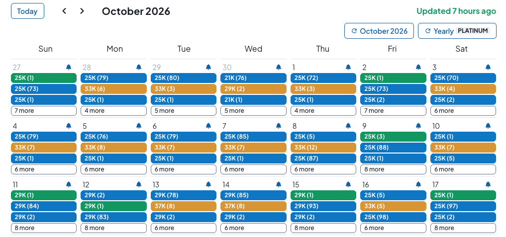 One limitation to note: the map displays general value information but not real-time availability. You’ll still need to click through to the calendar view to confirm that award space exists for your specific dates. Think of the map as a discovery tool that narrows your options before you dive into detailed availability checking.
