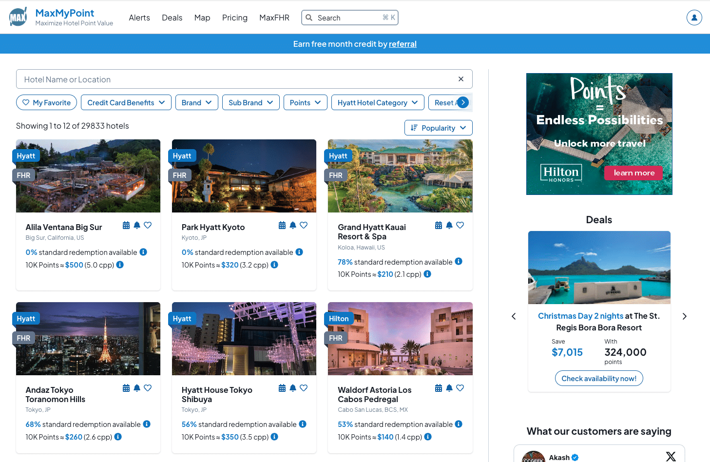 Enter MaxMyPoint and MaxFHR: these two complementary tools are designed to transform how you book hotels. MaxMyPoint specializes in tracking award availability and dynamic pricing across major hotel loyalty programs, while MaxFHR focuses on finding the best deals and comparing benefits for Fine Hotels & Resorts bookings. Together, these platforms provide a comprehensive solution for both points enthusiasts and travelers seeking premium paid stays.