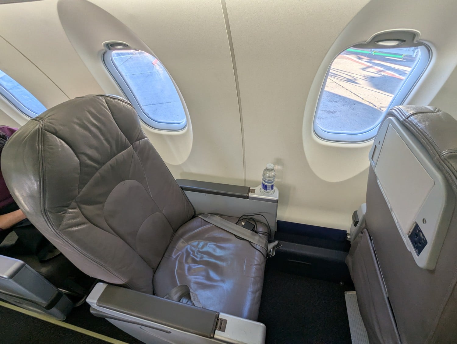 Me? I chose row 1A because I wanted it all to myself; as you can see, there are 12 total Business seats across four rows with four single seats. I wouldn’t be too worried about sitting in Economy on one of these CRJs either; the leg room didn’t look bad, and even the economy is in a respectable 2-2 layout.