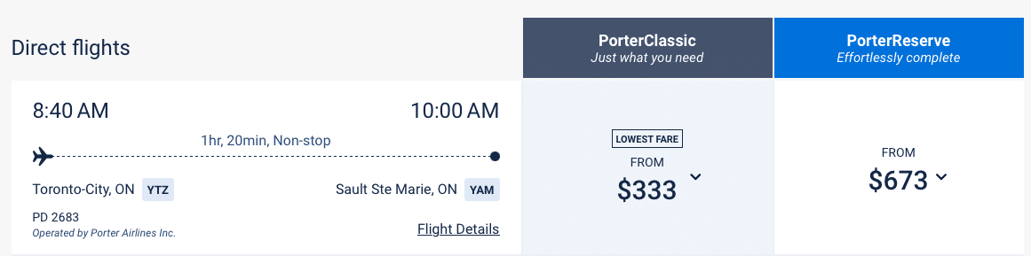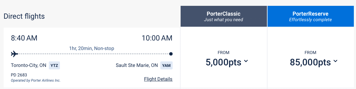 For example, on one of our flights back to Sault Ste. Marie to visit family, we got 6.6 cents per point of value ($333/5,000 points = $0.0666), which is absolutely bonkers!