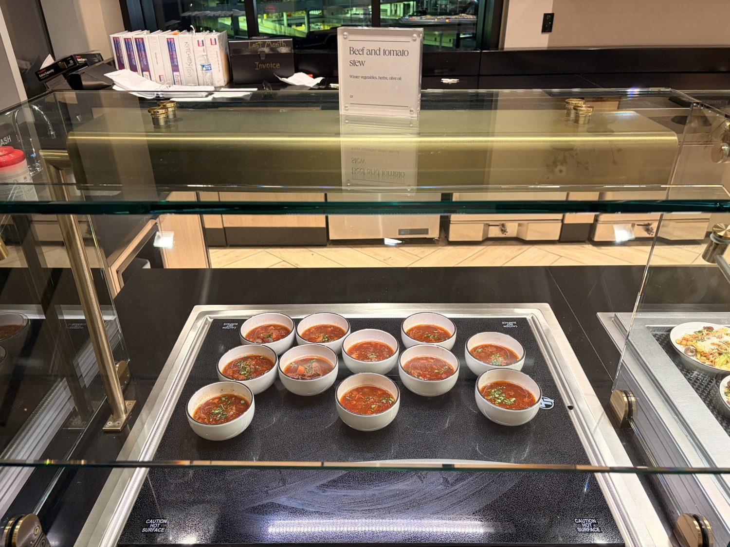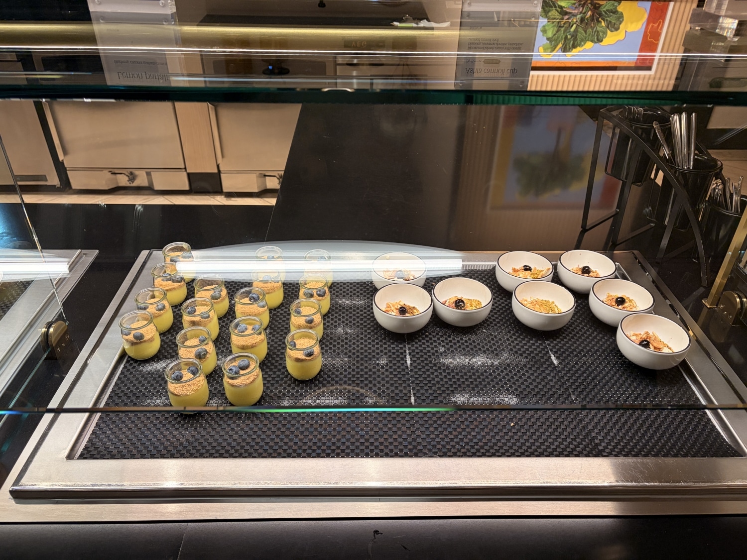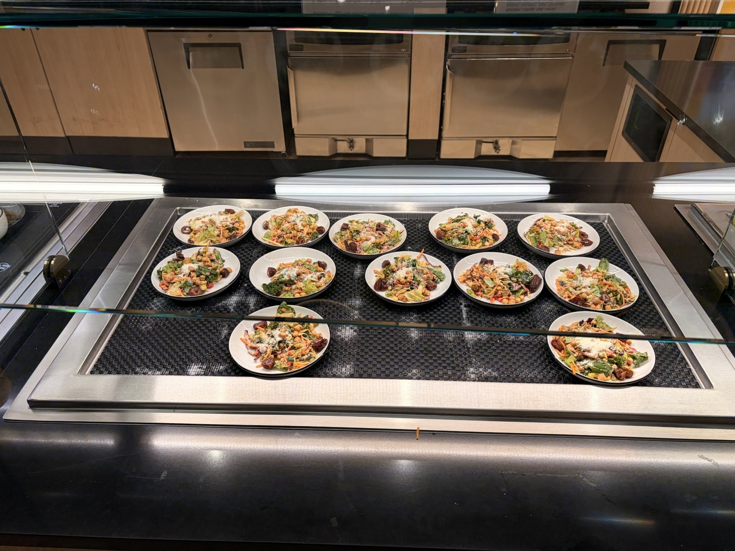 On top of the dine-on-demand service, you’ve got the option to grab from a buffet of pre-plated food. This is tucked away in a corner of the lounge to help reduce traffic throughout.