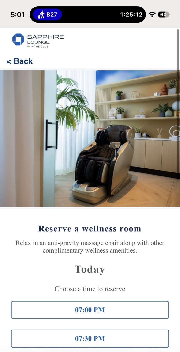 The Sapphire Lounge Boston also offers wellness rooms with massage chairs and rest pods, which are essentially quiet rooms with curtains. With my timing, I was only able to try out the rest pod, but it was an excellent refuge from the hustle and bustle in the busy lounge.