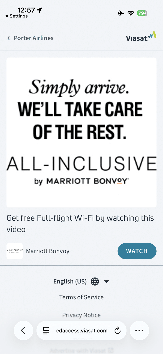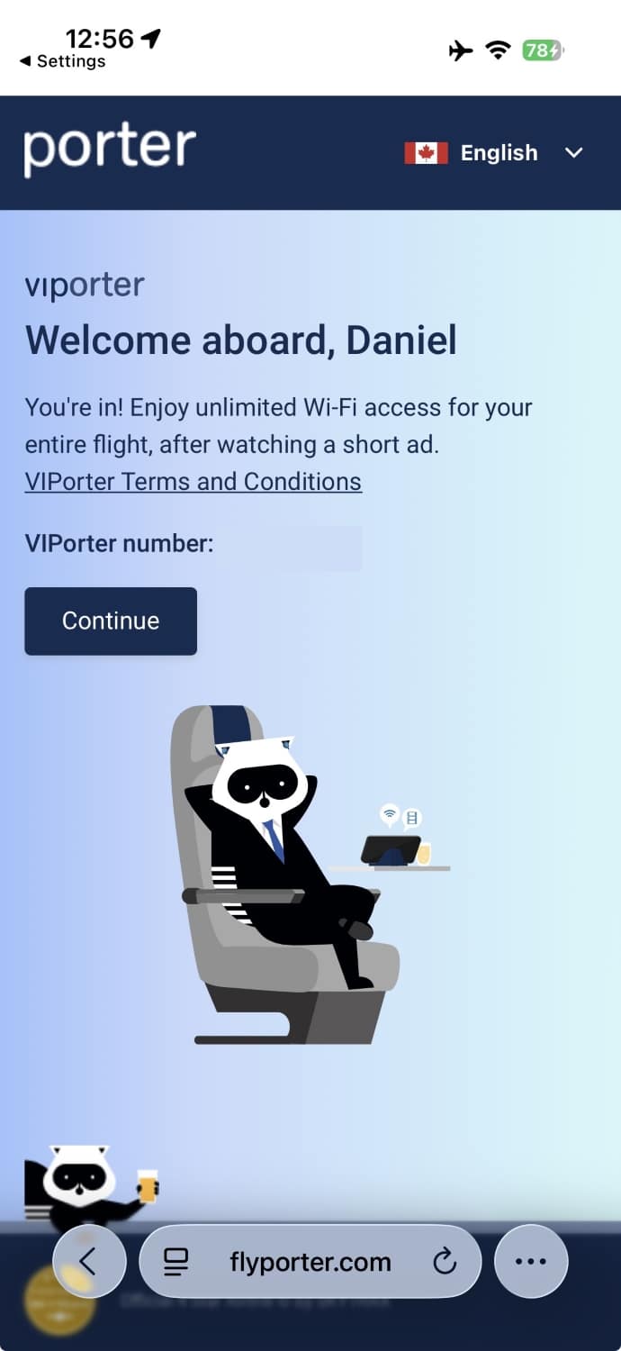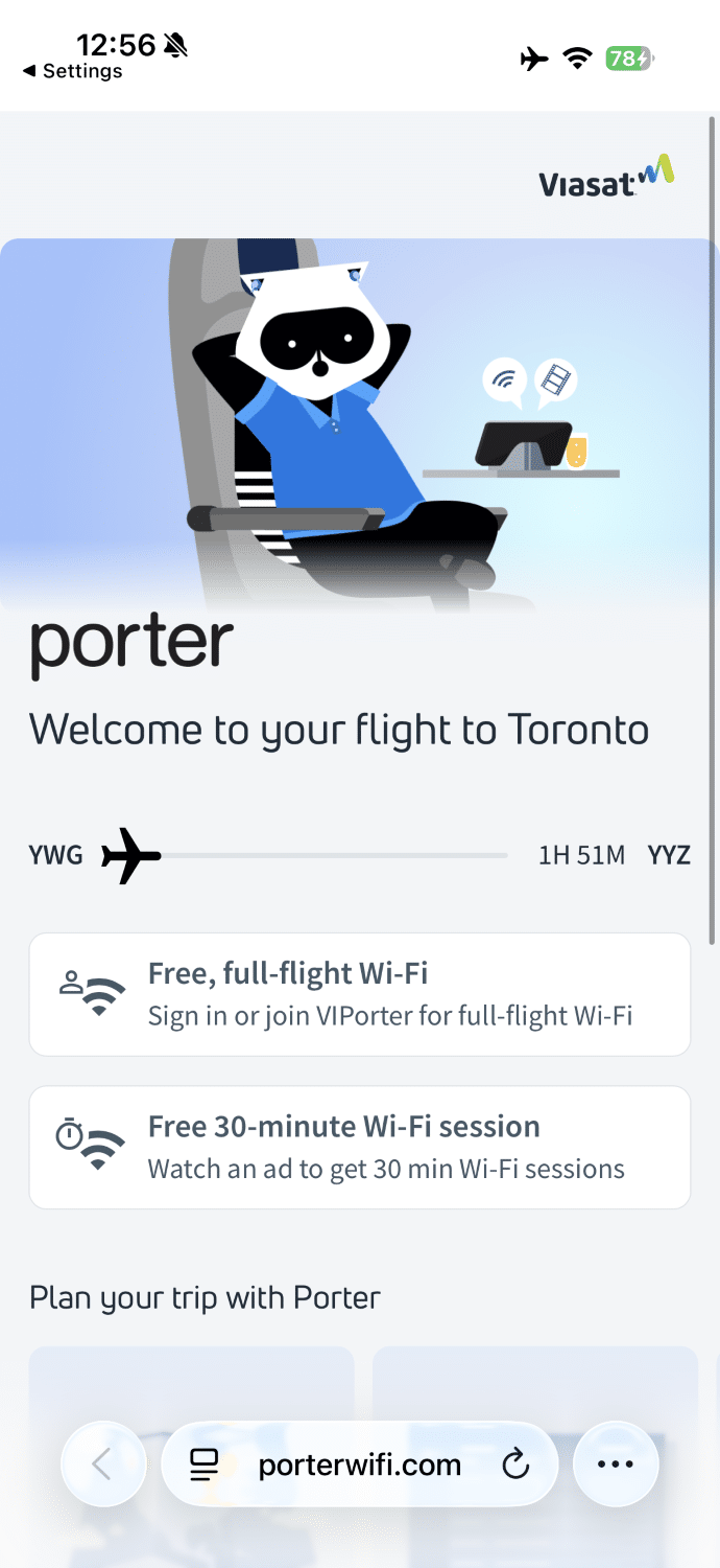 While the free in-flight wifi is easy to access, there can be issues getting the automated login screen to pop up. I overheard a conversation between the flight attendant and another passenger, and she instructed him to try inputting porterwifi.com into Google Chrome rather than Safari after connecting.