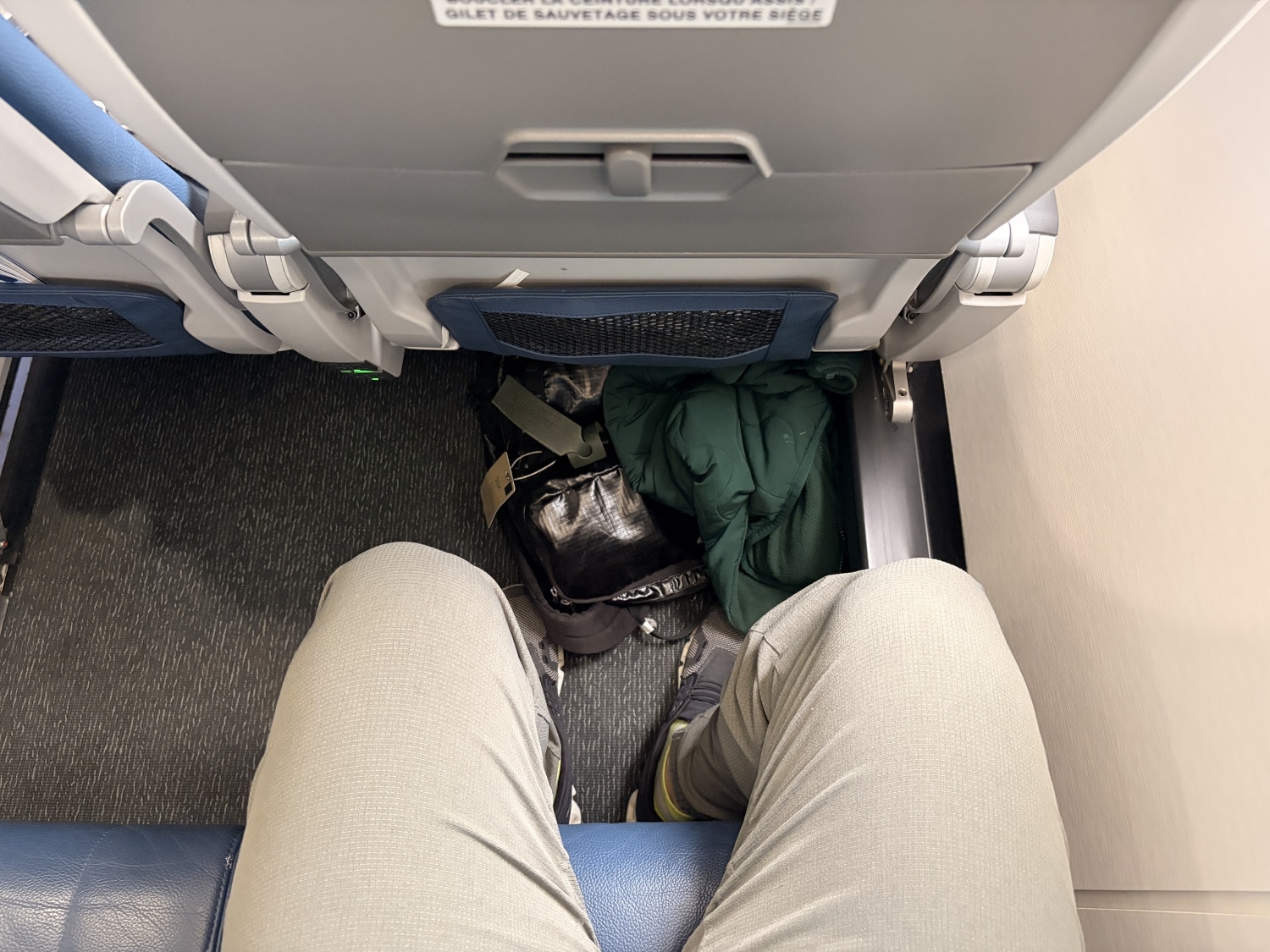 I’m just under 6ft tall, and I had more legroom than I could ever need, even with a large backpack and vest to shove under the seat in front of me. As with most North American carriers, you also have your own air vent. There’s a literature pocket that houses information about the BMO VIPorter Mastercards, the menu (including food for purchase), and the safety card.