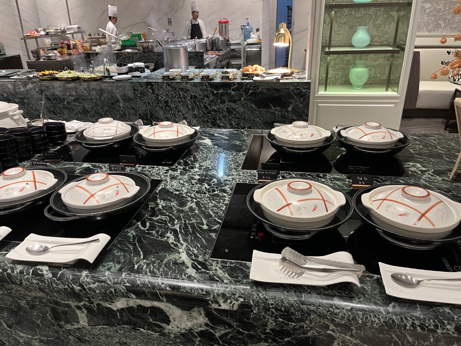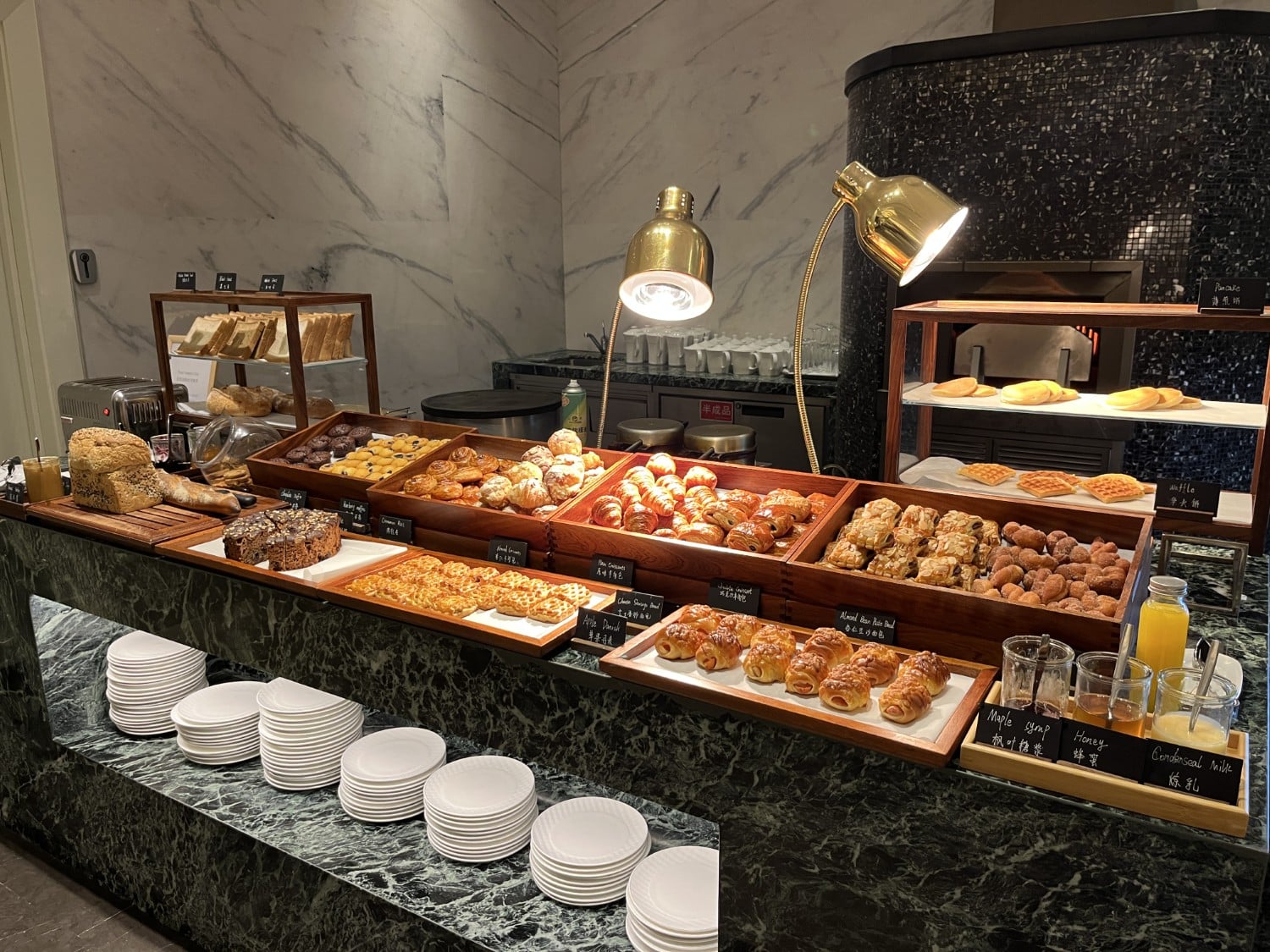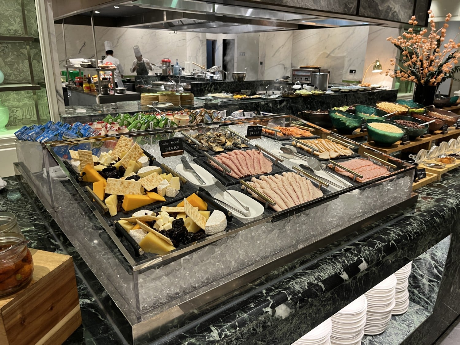 I had a very early flight from Shanghai to Seoul that I couldn’t afford to miss, but I was able to pop in for a quick bite and some pictures of the breakfast I was entitled to as part of my Marriott Bonvoy Titanium Elite status. The interior is decorated just as lavishly as the rest of the hotel.