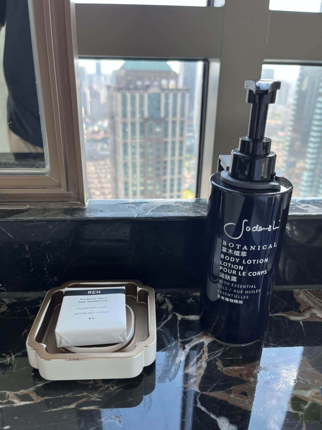 Complete with a full tub, dual vanity, and corner window views of the sunset, it was stunning. The amenities were the same brand as what I had experienced at the St. Regis Toronto, which is a consistency I love in the Marriott portfolio.