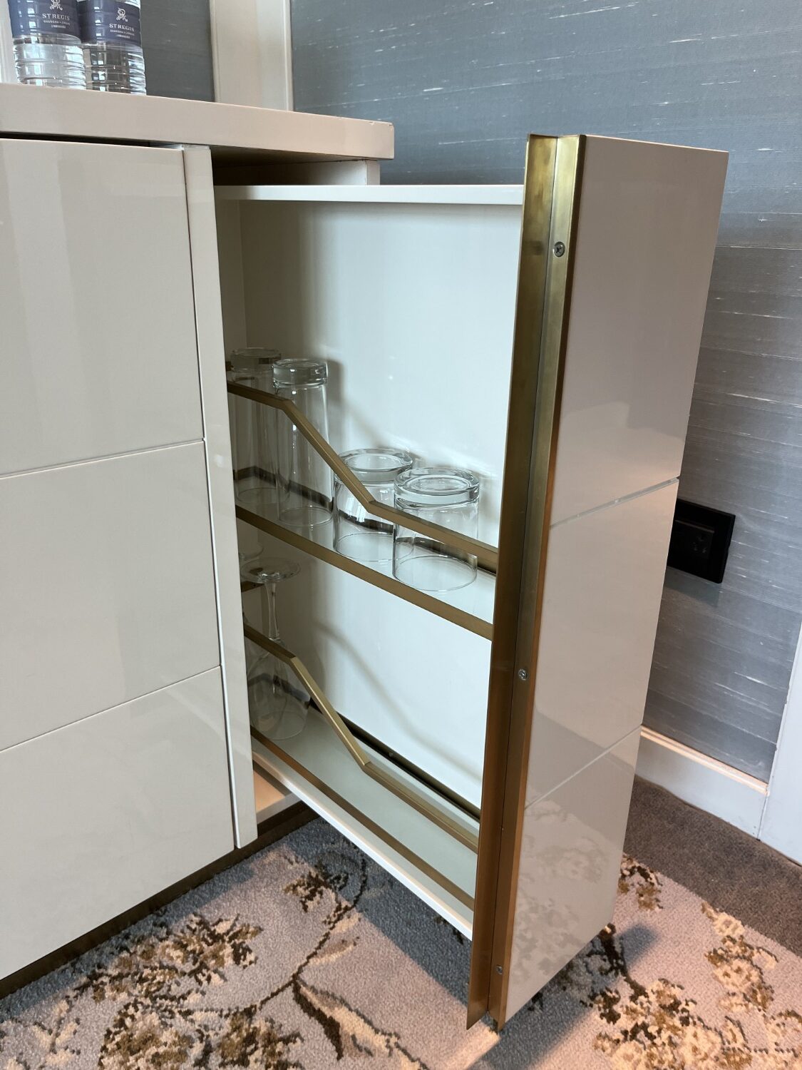 Across from the bed is the TV, and the minibar is delightfully integrated into it. Complete with signature St. Regis stir sticks, a touch I thought was excellent.