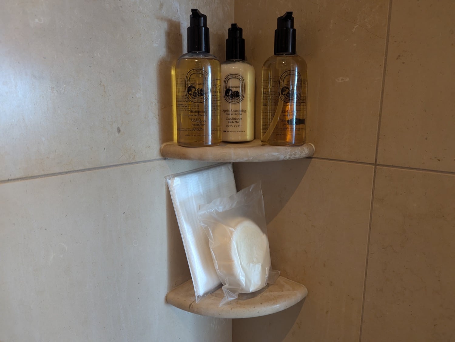 Some additional bath accessories are provided and toiletries are supplied by Diptyque.