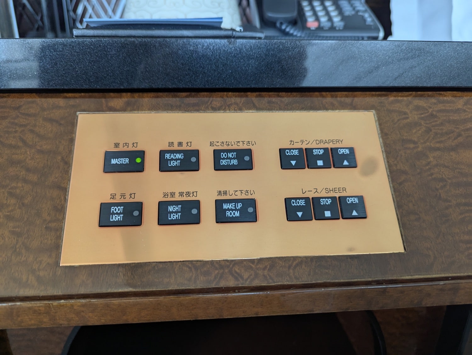 Built into the nightstand was a control panel that could be used to operate all of the lighting in the room as well as open and close the power-assisted drapes.