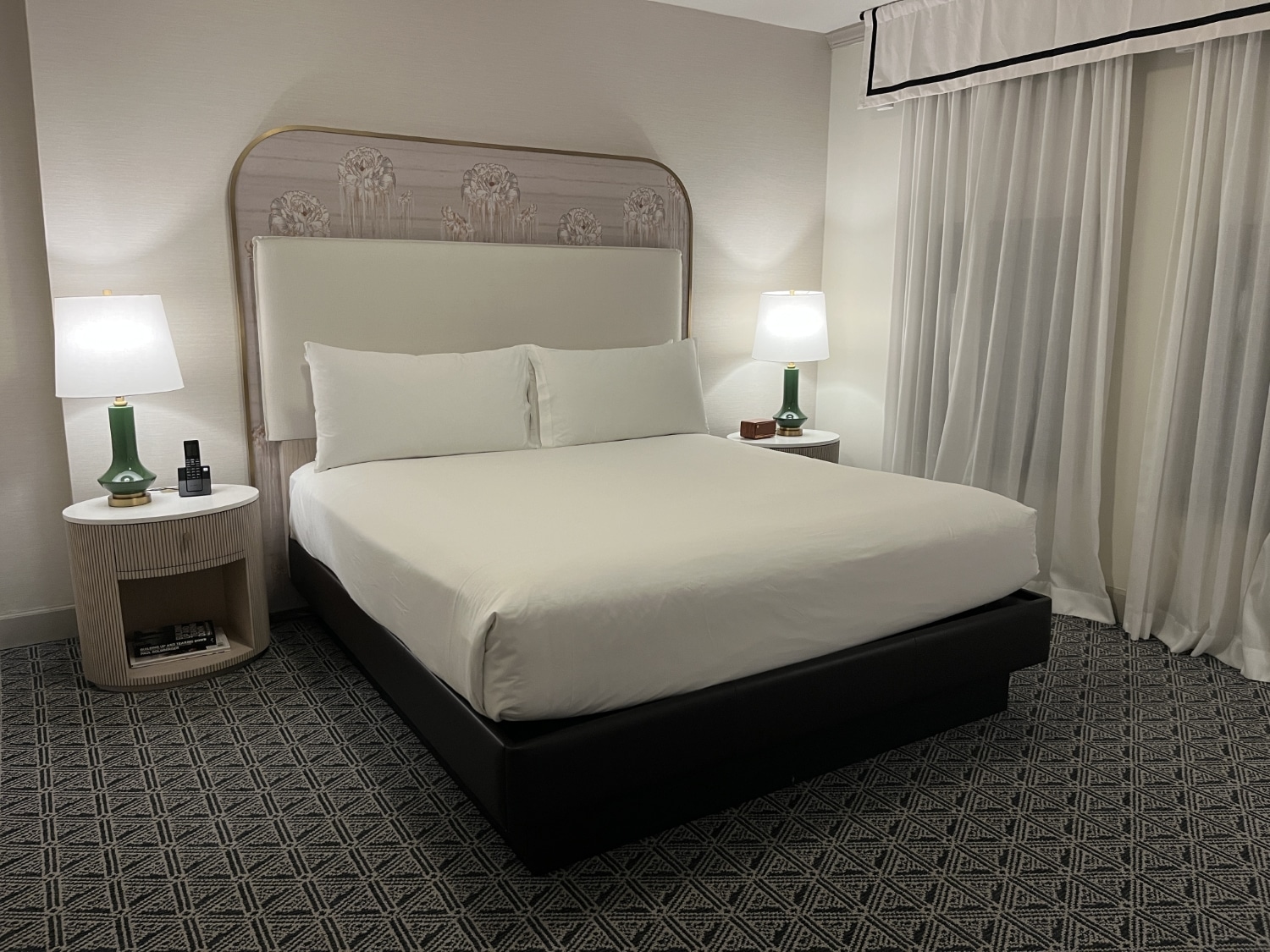 The bedside tables were simple but of really high quality. I loved the fact that they include a direct connection for USB-C cables as well.