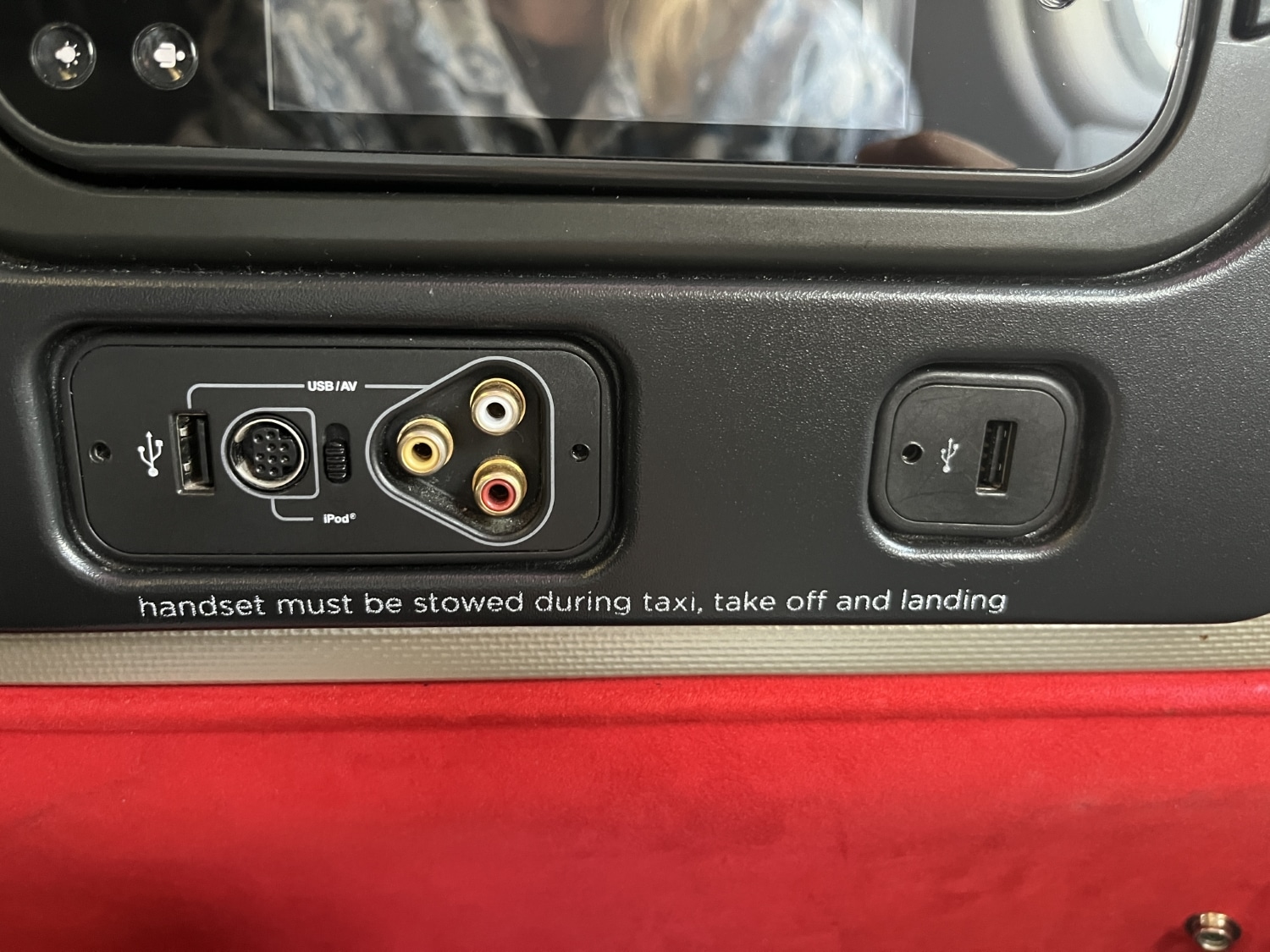 The other features of the seat were a footrest, seat recline on the right armrest, a relatively large storage pocket, and USB charging under the entertainment remote.