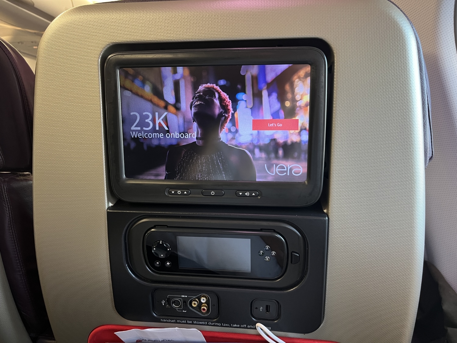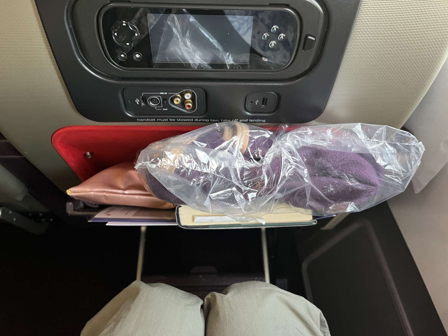 Virgin Atlantic Premium Economy has excellent service and food, but this is their oldest plane, and the age shows in the cabin and entertainment console. Even though the taxes and fees are high, considering the small points cost, it’s a fantastic value. An unfortunate plane swap from their newer A350, but that means we’ll have to fly with Virgin Atlantic again to get a great experience all around!
