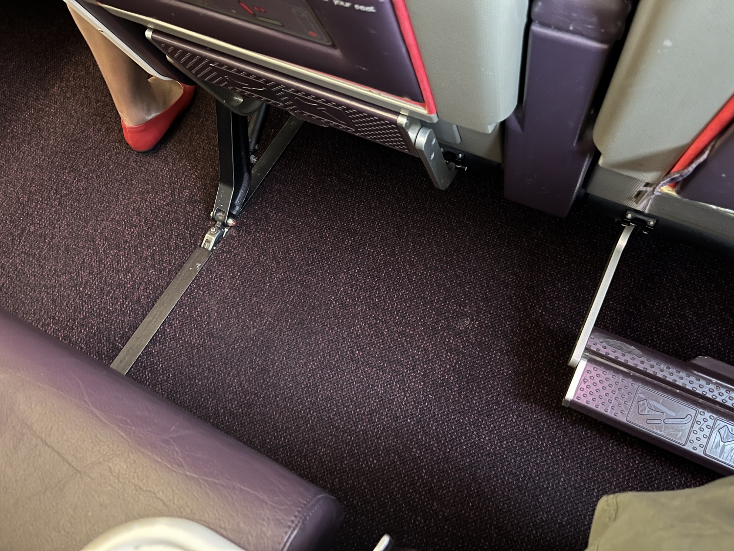 The seats in premium economy are a lovely shade of burgundy that matches the Virgin Atlantic aesthetic well. However, on the A330-300, the seats feel pretty tired.