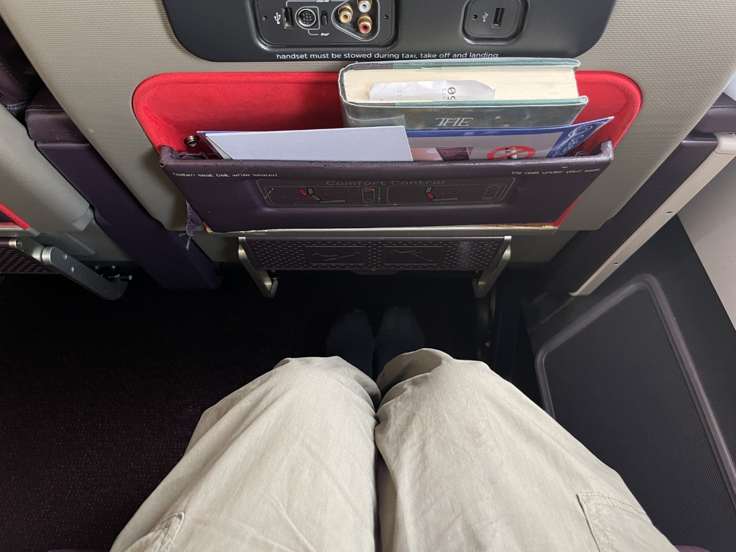 A better seat option would be the bulkhead row for extra legroom, or the last row for full recline without worrying about a row behind you. But with the last-minute equipment swap, seats were randomly assigned.
