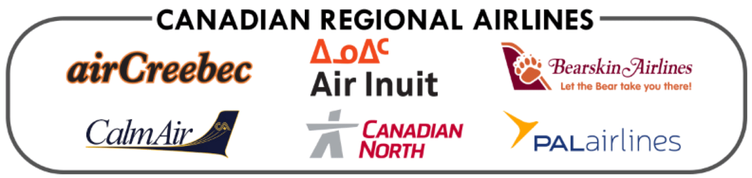 Canadian Regional Airlines (Air Creebec, Air Inuit, Bearskin Airlines, Calm Air, Canadian North, PAL Airlines)
