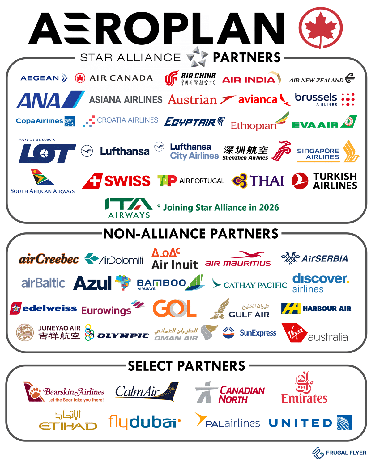 Types of Aeroplan Airline Partners