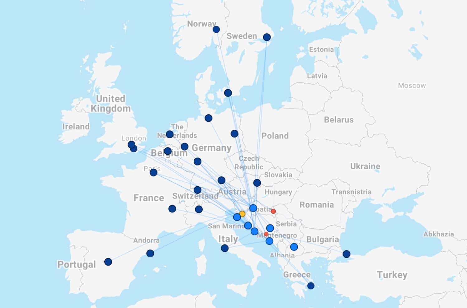 Croatia Airlines operates a very limited route network within Europe and doesn’t offer any long-haul service. The airline has a fleet of just 15 aircraft, configured in an all-economy layout.
