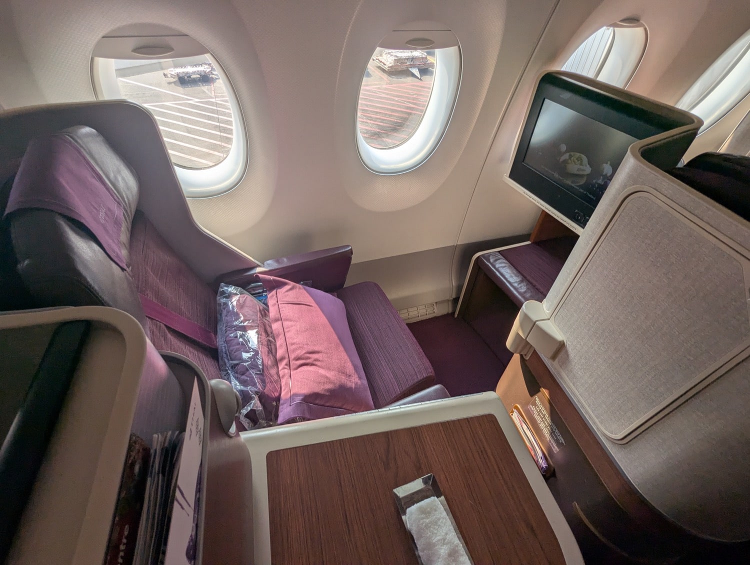 Although Air New Zealand offers a consistent business class experience, it also features one of the oldest and most unusual cabins still in service. Often nicknamed “coffin class” or the “sardine can seat,” these seats are among the narrowest and least private business class seats available today. The airline is currently retrofitting its widebody fleet over the next few years, so we can hope for improvements in both the hard product and availability going forward.